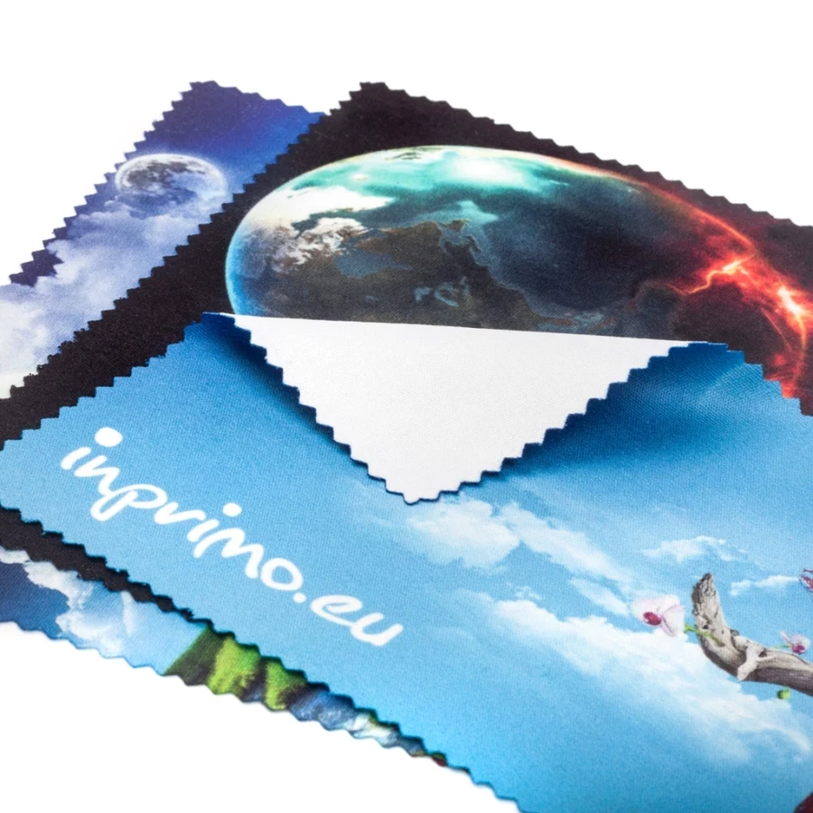 ¿Busca gadgets promocionales poco obvios? Las gamuzas impresas para gafas son un complemento interesante para las campañas promocionales, no sólo en las ópticas. Este producto está hecho de poliéster suave y agradable al tacto, que limpia perfectamente las gafas sin rayarlas. Podemos producir una impresión por sublimación a todo color en la gamuza para gafas impresa, que no sólo representará el logotipo de su empresa, sino también cualquier gráfico o imagen de su elección. Las gamuzas impresas para gafas son un excelente ejemplo de gadget promocional práctico que apreciarán todos los usuarios de gafas correctoras o de sol.